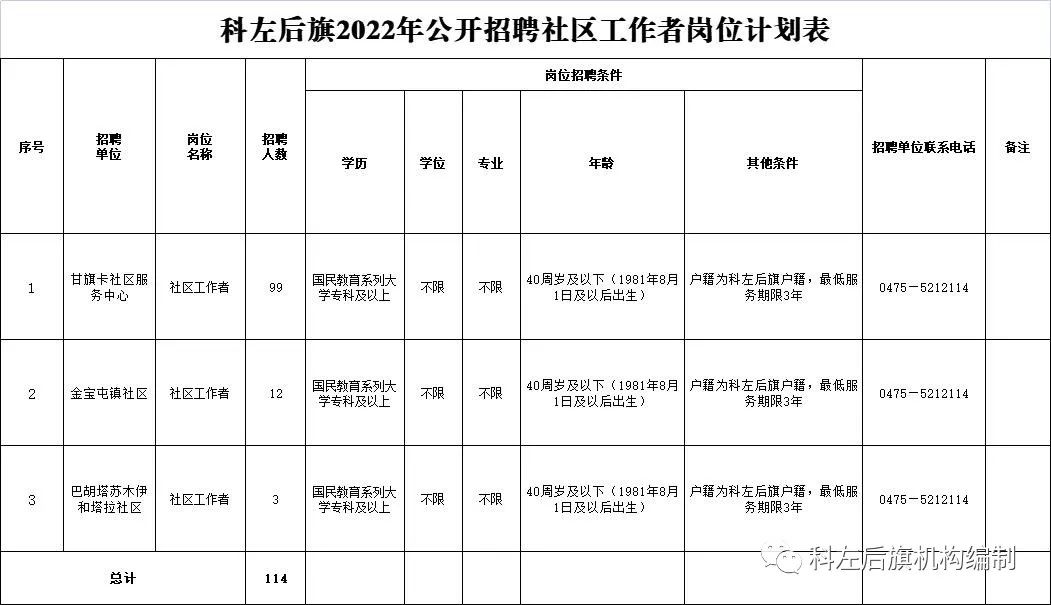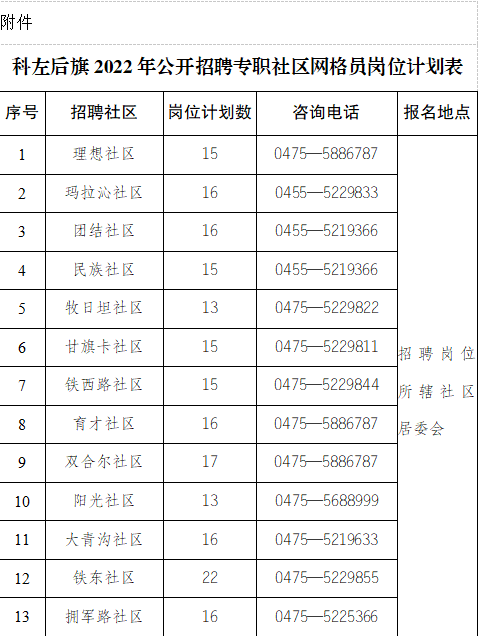 科(ke)(ke)左(zuo)后(hou)旗2022年(nian)公開招聘社(she)區工(gong)(gong)作(zuo)者公告為建設(she)(she)一支數量充(chong)足(zu)、結構合理(li)、管理(li)規范、素質(zhi)優良的社(she)區工(gong)(gong)作(zuo)人員隊(dui)伍,根據《科(ke)(ke)左(zuo)后(hou)旗社(she)區工(gong)(gong)作(zuo)者職業體(ti)系建設(she)(she)實(shi)施方(fang)案》(后(hou)組